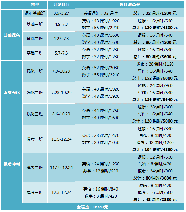 針對基礎較弱,想報讀名校的學員,全程班大班授課+小班課外輔導+個性化備考服務。100%保證通過,不過免費重讀到考上為止。