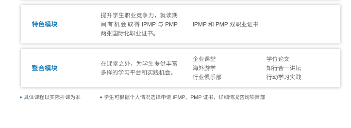 華理商學院構建職業發展平臺旨在幫助學生準確認識,個人優勢、確定職業生涯目標,采用一對一導師計劃,幫助學生把握適合自己的職業方向。同時,華理 MEM 項目與IPMP 和 PMP 職業證書雙掛鉤,幫助學生提升職業競爭力。