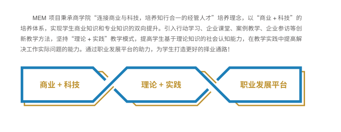 華理 MEM 課程體系緊密結合產業特點,重點研究智能制造、大數據分析、項目建設的主要管理模式與發展演化、模式要素與關系、新模式的創新與應用,其目標是讓畢業生成為兼具理論知識和產業知識的管理人才。