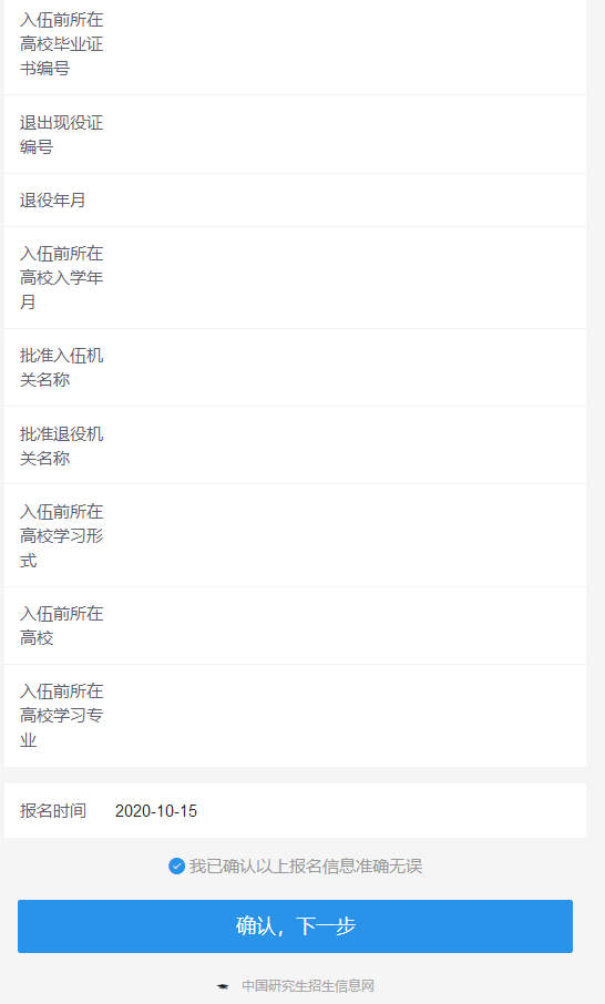 以上材料為所有考生均必須上傳,用來確認身份信息。其他所需材料,根據本人報考身份的實際情況如實上傳,確認無誤后點擊“確認并提交網上確認審核”。
