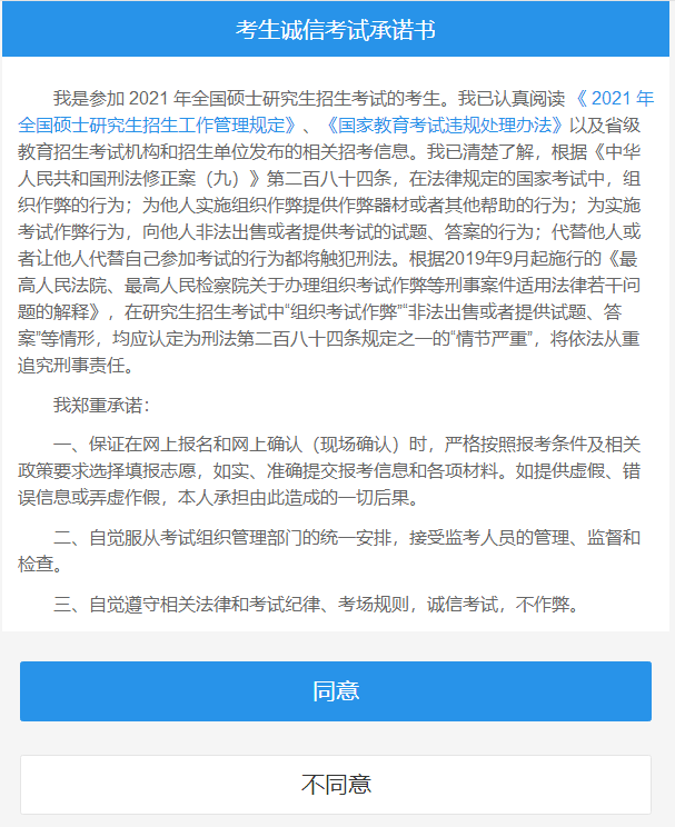 閱讀“考生誠信承諾書”,點擊“同意”。