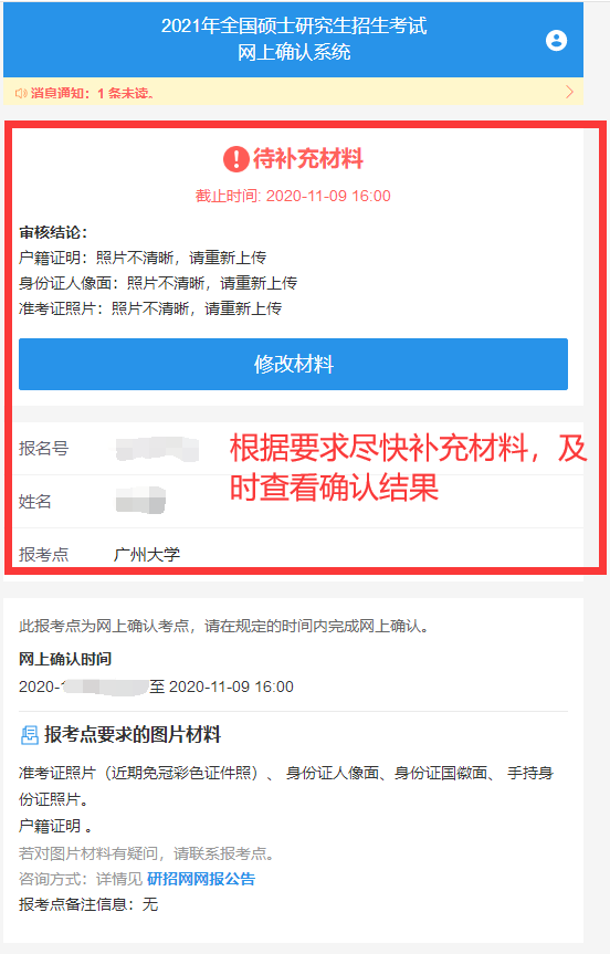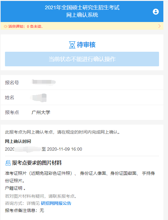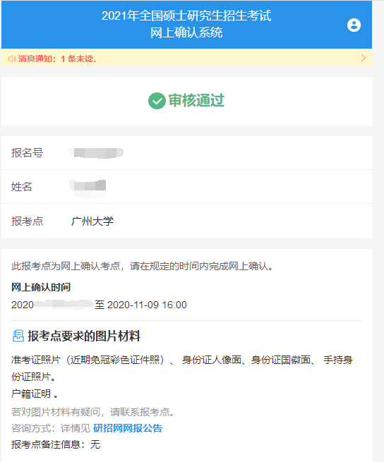 自行登錄網上確認系統及時查看審核結果。如審核通過,系統會有短信通知,但一定要登錄系統,反饋結果顯示“審核通過”說明您已經完成了2021年研究生報名信息確認工作,請認真準備考試。