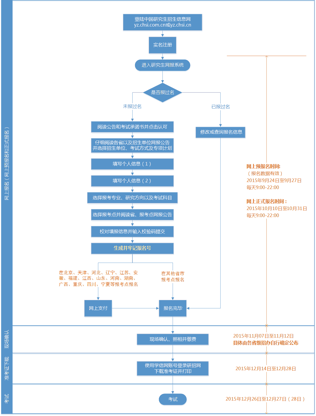 ⑽ 修改或查詢自己的報名信息,其中招生單位、考試方式及報考點等信息是不可修改的內容;請在網報結束前登錄確認所填信息,建議將所有信息保存;在北京、天津、河北、遼寧、江蘇、安徽、福建、江西、山東、河南、湖南、廣西、重慶、四川、寧夏報考點報考的考生請檢查網上支付是否成功(銀行卡扣費即為成功支付);