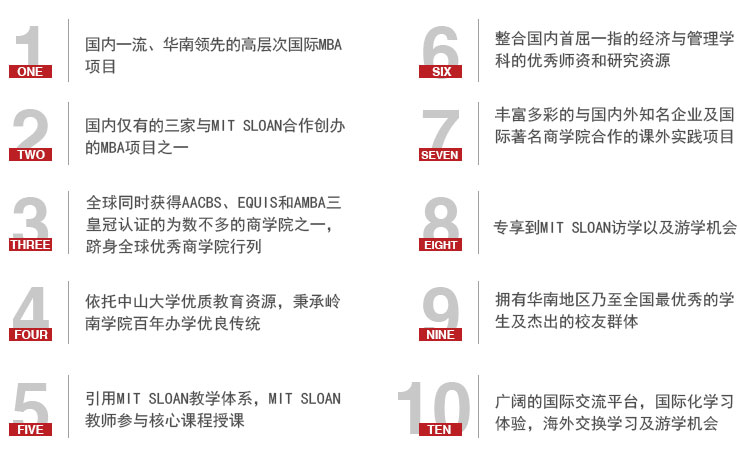 嶺南MBA項(xiàng)目始于1998年,是中國(guó)最具影響力、最有價(jià)值,和最受雇主歡迎的MBA項(xiàng)目之一。從創(chuàng)辦伊始,嶺南MBA項(xiàng)目始終堅(jiān)持國(guó)際化教育的發(fā)展方向,以“全球視野,未來(lái)領(lǐng)袖”為培養(yǎng)目標(biāo),致力于培養(yǎng)能夠適應(yīng)經(jīng)濟(jì)全球化、具有國(guó)際化經(jīng)營(yíng)管理能力的商業(yè)精英。通過(guò)與美國(guó)麻省理工斯隆管理學(xué)院等國(guó)際著名商學(xué)院在教學(xué)體系、教師資源、交換留學(xué)、雙學(xué)位項(xiàng)目等多方面的合作,吸收歐美先進(jìn)的工商管理教育理念,并整合中山大學(xué)和嶺南學(xué)院的優(yōu)質(zhì)教學(xué)資源,嶺南MBA已經(jīng)形成了自身的獨(dú)特優(yōu)勢(shì)和品牌效應(yīng)。